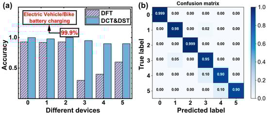 (a) The results of DFT and DCT/DST. (b) Confusion matrix of DCT/DST method.