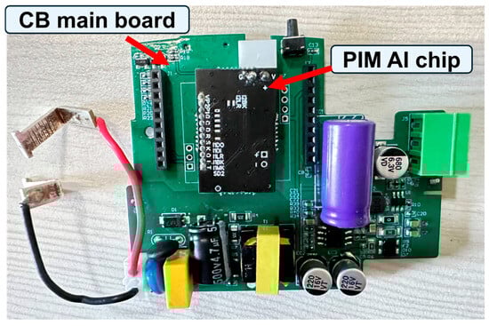 As shown in Figure 2, the edge AI platform is deployed on an intelligent CB main board. First, the current of the devices are collected by the current transformers (CT). A CT measures the current in a circuit based on the principle of electromagnetic induction [27]. Subsequently, the embedded PIM chip samples the signals at a sampling rate of 16 KHz, continuously. The data are then fed to the pre-trained NN-based model for each alternating current (AC) cycle to obtain the final output. The PIM AI chip provides output back to the CB main board, which finally gives corresponding warnings according to the output results. If the CB detects an abnormal situation, it immediately takes action, such as tripping the breaker to prevent potential hazards or triggering an alert via Bluetooth to notify the relevant parties.