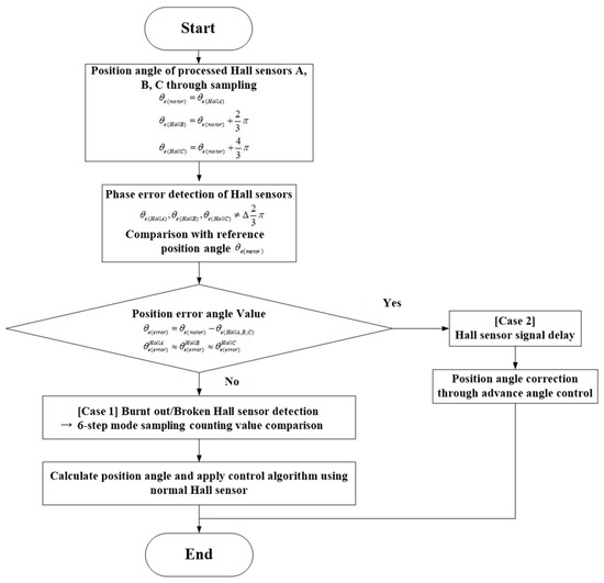 Malfunctions in which the three position data obtained from the Hall sensors in (15) may change can be classified into two cases, as shown in Figure 14.