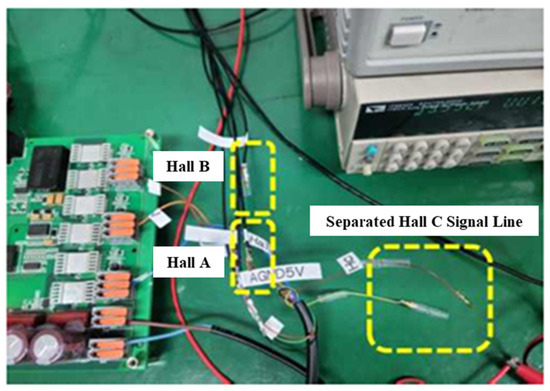 Separation of Hall signal lines for validating the proposed fault detection and rotor position transition algorithm.