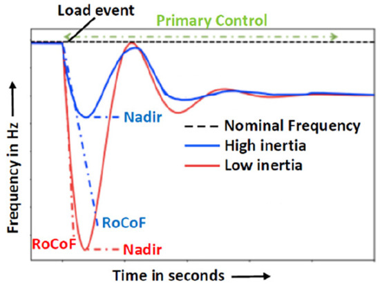 Frequency response with high and low inertia [10].
