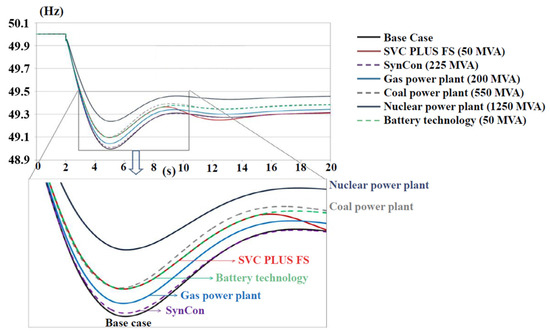Another interesting consideration raised from this review is how some technologies analyzed, such as STATCOM and E-STATCOMs, can support LCC-HVDC systems. If an LCC-HVDC thyristor commutation fails, the STATCOM/E-STATCOM can absorb or inject power into the grid, thereby stabilizing the frequency.