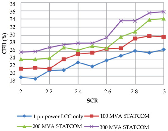 - Burr, J.; Finney, S.; Booth, C. Comparison of Different Technologies for Improving Commutation Failure Immunity Index for LCC HVDC in Weak AC Systems. In Proceedings of the 11th IET International Conference on AC and DC Power Transmission 2015 (ACDC2015), Birmingham, UK, 10–12 February 2015; pp. 1–7. [Google Scholar]