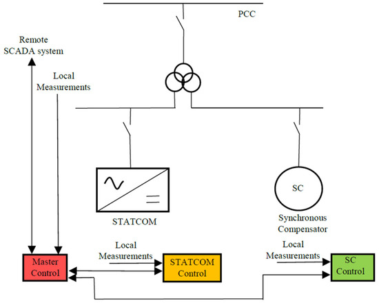 The technologies of SC and STATCOM are generally equipped with stand-alone control systems. In an H-SC setup, though, the stable functioning of the two control systems at the same time necessitates coordination. Therefore, a Master Control is designated to oversee the coordination, with the specific purpose of monitoring, synchronizing, and optimizing the concurrent operation of the STATCOM and SC control systems. Master Control prevents “control hunting” between the two systems and ensures that the combined branches operate efficiently as a unified system.