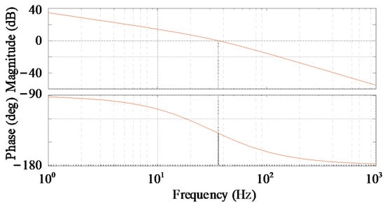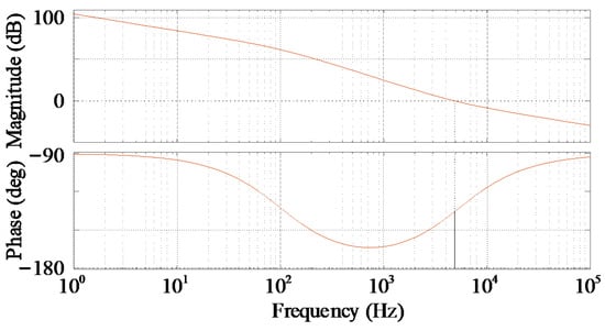 Based on the simulation parameters, the proportional gain of the speed outer loop regulator Kp_speed is set to 1000, and the integral gain Ki_speed is set to 20,000. The Bode diagram of the speed outer loop is depicted in Figure 9.