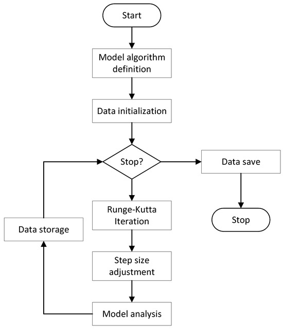 In order to verify whether the simplified electrical system model is suitable for a digital twin simulation, it is deployed in a C language package in a Windows environment for energy balance simulation verification and comparison. The whole simulation flow of the software program is shown in the Figure 8.