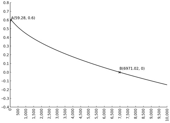 The function is shown in Figure 1, where . It is a convex function with extrema at and zeros at and . Here, , with values of , , and retained to two significant decimal places.