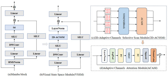 - Zhu, L.; Liao, B.; Zhang, Q.; Wang, X.; Liu, W.; Wang, X. Vision Mamba: Efficient visual representation learning with bidirectional state space model. arXiv 2024, arXiv:2401.09417. [Google Scholar]