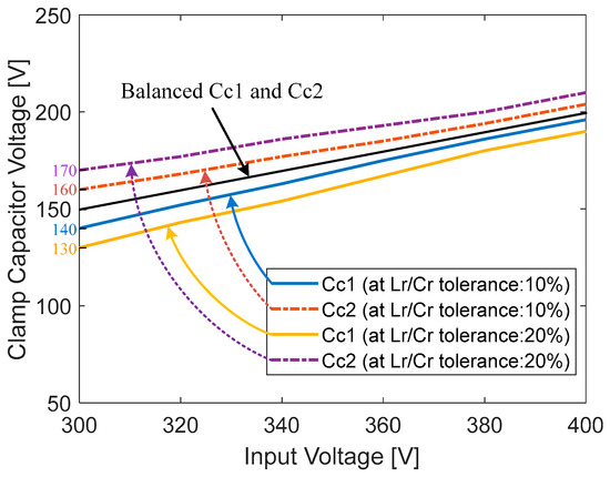 Simulated clamp-capacitor voltage imbalance with input voltage.