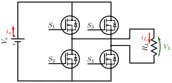 For both the primary and secondary sides of the circuit in Figure 1, a configurable bidirectional DC/DC converter is used as shown in Figure 2. Based on the use of switches –, the converter can be set to buck, buck–boost or boost mode in either forward or reverse direction. The possible configurations are shown in Table 1, where a PWM signal is used to track a reference signal using a PI controller.