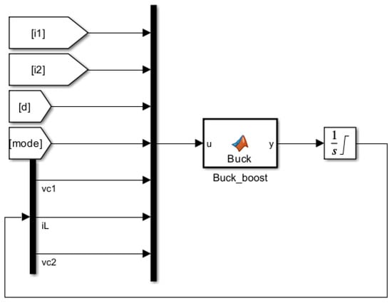 The equivilant model of the DC/DC converter can be seen in Figure 6 and its Simulink implementation is shown in Figure 7.