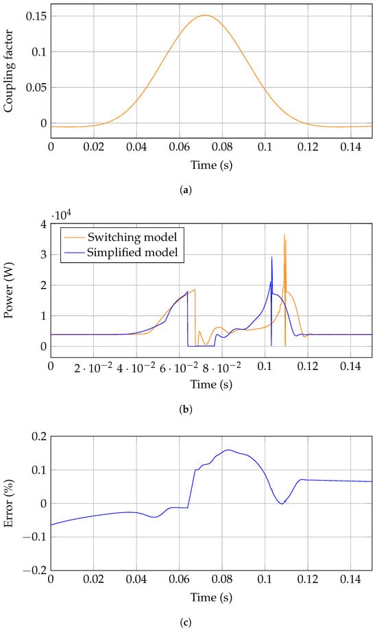 Full system power comparsion and running error estimation. (a) Coupling factor (k). (b) Instantaneous source power. (c) Cumulative error ().