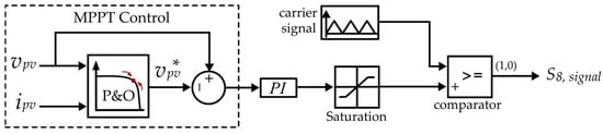 Due to the unidirectional nature of the PV system, only one bidirectional switch (S8) is used. The Perturb and Observe (P&O) MPPT control, shown in Figure 17, is employed for the purpose of achieving simplicity, accuracy, and rapid response [33].