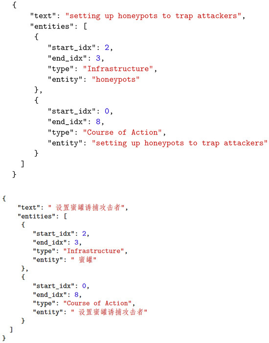 In order to validate the model’s ability to recognize nested entities, we use the LLM to extract type-specific entities from the crawling results of the only Chinese CTI dataset, CDTier, and after manual checking, the non-compliant entities are characterized and cleaned using code. Due to the limited size of the original dataset, which is insufficient for effective model training, we utilize LLM for data augmentation to increase the dataset size.