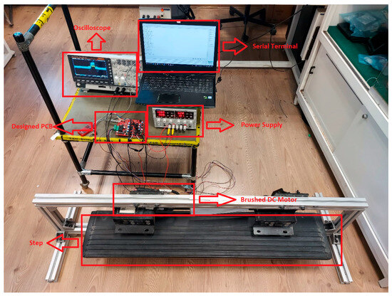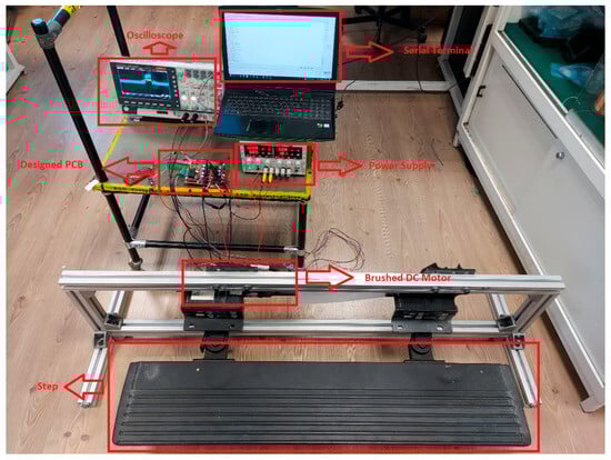 In this section, experimental results of the proposed brushed DC motor drive system are given. The proposed brushed DC motor driver is tested experimentally with an under-door step system of a vehicle. In this test setup, the brushed DC motor provides mobility to the mechanical under-door step system. The captured and measured data from the brushed DC motor driver are sent to an interface which is developed to collect and monitoring the measured data on a computer via UART and these data are recorded.