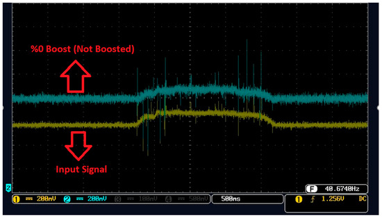 Input (yellow) and boosted (blue) voltage for 0% Boost.