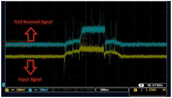 Input (yellow) and boosted (blue) voltage for 10% Boost.