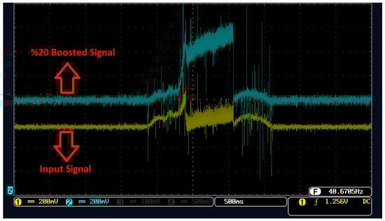Input (yellow) and boosted (blue) voltage for 20% Boost.