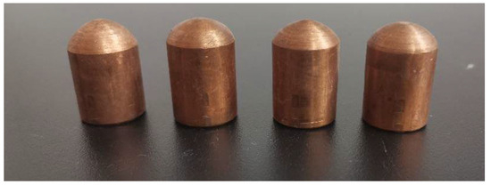 The test materials are shown in Table 2, and copper–tungsten materials are selected for the contacts, as shown in Figure 3. Before each test, the contact surface was sandpapered to ensure consistency. To ensure consistency in the contact surface preparation, sandpaper with a grit size of 600 was used uniformly across all test samples. The sandpaper was replaced after every 10 samples to maintain its abrasiveness and ensure a consistent surface roughness. This standardized approach minimizes variability and ensures that the contact surfaces are prepared under identical conditions, thereby enhancing the reliability of the experimental results. The test was repeated 12 times under the current-carrying conditions of the moving and static contacts, and the voltage and current signals at the time of arcing were recorded and averaged to minimize the error. The tests were repeated 12 times to ensure the reliability and statistical significance of the results. This number was determined based on preliminary trials and statistical power analysis, which indicated that 12 repetitions would provide a sufficient sample size to capture variability and ensure the robustness of the findings. By repeating the tests multiple times, we can minimize the impact of random errors and enhance the confidence in the observed trends and conclusions.