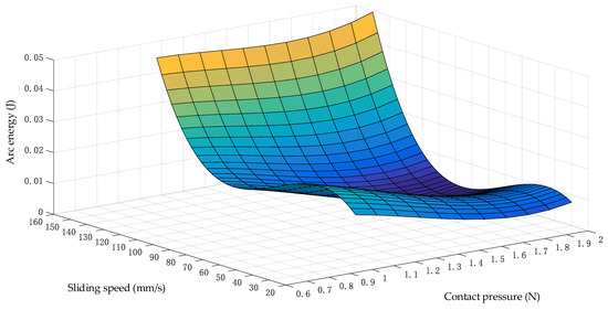 In order to further investigate the functional relationship between sliding speed and arc energy, the sliding speed and arc energy under different contact pressures were analyzed. The functional relationship between sliding speed and arc energy under different contact pressures is shown in Table 9, where 30 ≤ x1 ≤ 120.