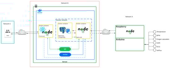 Within the framework of the project, the available sensors from the TIGUM research group were utilized, encompassing measurements of temperature, pulse oximetry, galvanic skin response (GSR), EKG, and airflow. In total, six signals are monitored, with sampling conducted every millisecond for each signal. This approach was adopted because implementing an asynchronous signal measurement system on Arduino exceeded the project’s scope. Moreover, measuring airflow and EKG signals was essential for generating diagrams that facilitate precise visualization. The functioning of the other signals will be elaborated on in the corresponding frontend section.