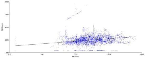 Heart rate (HR) accuracy was reported with an average of 85.08 bpm and a substantial standard deviation of 24.20 bpm, reflecting variability in the measurements. The confidence interval of 84.74, 85.62 bpm indicates the system’s capability to provide consistent and reliable data compared to reference devices, with heart rate values ranging from a minimum of 70 bpm to a maximum of 100 bpm.