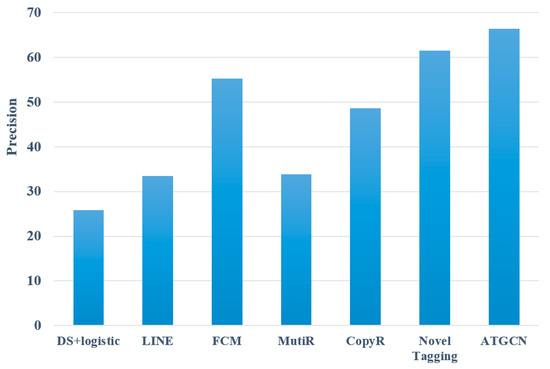 From Table 6 and Figure 13, we can see that when GCN has two layers, the experimental results reach the best. When the number of layers increases from one to two, the result is improved, which illustrates that the deeper GCN model can obtain abundant information and bring better performance. However, when the number of layers increases from two to three, the result of the experiment decreases. This may be due to the overfitting of the model. It also shows that a deeper GCN layer may not necessarily bring better experimental results.