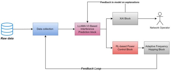 The use of LLMs, including the XAI-based Llama v3, for interference management is relatively uncommon. LLMs have been proven to be very successful across several domains, including natural language processing and predictive analytics. Due to their capability to handle large volumes of data and to produce context-aware predictions, they are suitable for the dynamic and often highly unpredictable conditions characteristic of most current wireless networks. Furthermore, using LLMs in conjunction with XAI techniques can give both accurate predictions of the interference and explain the cause of the interference, which would be helpful for the network operators to take necessary actions against the interference [25,26].