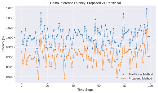 Figure 9 presents the proposed and traditional methods’ inference latency. The proposed method also shows the ability to conduct inference with less latency than the proposed method. The proposed method converges to 0.95 s, while the traditional method oscillates around 1 s. This shows how efficient the LLM-based inference process is and how well it can make decisions in real-time.