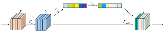 SENet [16] is a network structure constructed by stacking blocks, which uses squeeze-excitation blocks to enhance the modeling ability of the network on the dependencies between channels. The proposal of this structure enables CNN to adaptively calibrate the feature response of each channel with minimal computational cost. SENet significantly improves the expression performance of CNN networks on image features, while also enhancing the generalization ability of network models on various target datasets. The network structure of SENet is shown in Figure 4.