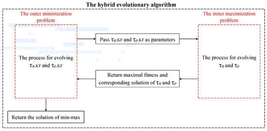 28], the current min–max model introduces a more complex objective function, which makes it much more challenging to solve the optimization problem. Finally, the proposed hybrid evolutionary algorithm is specialized to address the above min–max problem. In inner and outer problems, the proposed algorithm firstly determines the global optimal area and then rapidly finds the optimal solution in this local area.