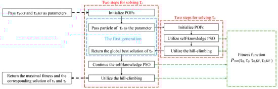 Step 2: When entering the process to evolve , the population , which contains , is also initialized with equally spaced particles. Then, the self-knowledge PSO is used where the fitness of each particle is calculated as being the value of ) where , , and are frozen. The maximal fitness of each particle during all generations is regarded as the personal best solution. The output is the global best solution, which is the maximum among all personal best solutions.
