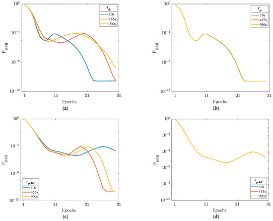 In Equation (16), the maximization can obtain an upper bound of the integrity risk as long as the true values of the correlation time constants lie in the interval. There is no doubt that this model can guarantee the bounding of the integrity risk. In contrast to the min–max optimization employed in Reference [