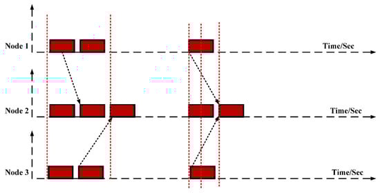 Figure 3 illustrates the example of spatiotemporal uncertainty. Both communicating node A and communicating node C might send communicating data packets at the same time in a particular scenario. On the other hand, the time of the data packets arriving at the Rx node might shift if the propagation latencies of the communicating nodes are not the same. Additionally, communicating node B could come across a collision if node A and communicating node C communicate data packets at distinct times.