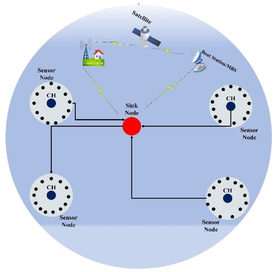 - Sathish, K.; Hamdi, M.; Chinthaginjala, R.; Pau, G.; Ksibi, A.; Anbazhagan, R.; Abbas, M.; Usman, M. Reliable data transmission in underwater wireless sensor networks using a cluster-based routing protocol endorsed by member nodes. Electronics 2023, 12, 1287. [Google Scholar] [CrossRef]