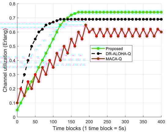 Channel utilization vs. time blocks.