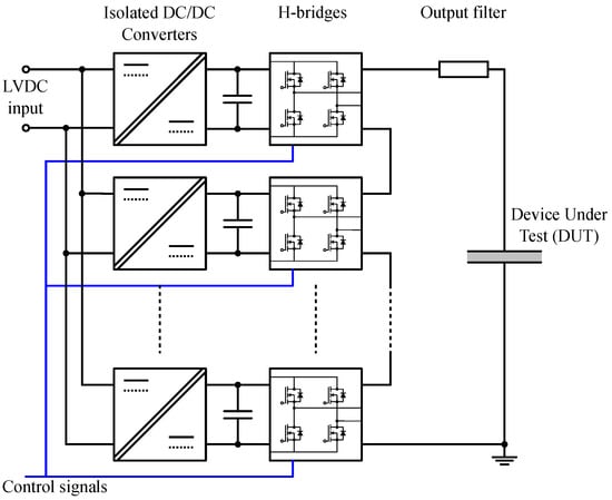 The general architecture of the envisioned modular CHB-based HV-AWG with multiple stages is illustrated in Figure 1, highlighting two critical components: the isolated DC/DC supply and the HV H-bridge.