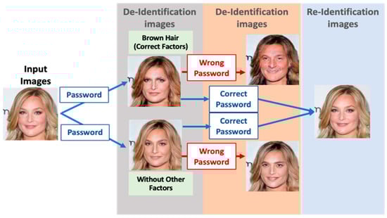 - Pan, Y.-L.; Chen, J.-C.; Wu, J.-L. A Multi-Factor Combinations Enhanced Reversible Privacy Protection System for Facial Images. In Proceedings of the 2021 IEEE International Conference on Multimedia and Expo (ICME), Shenzhen, China, 5–9 July 2021; pp. 1–6. [Google Scholar] [CrossRef]