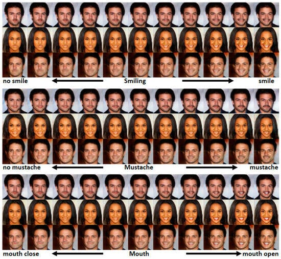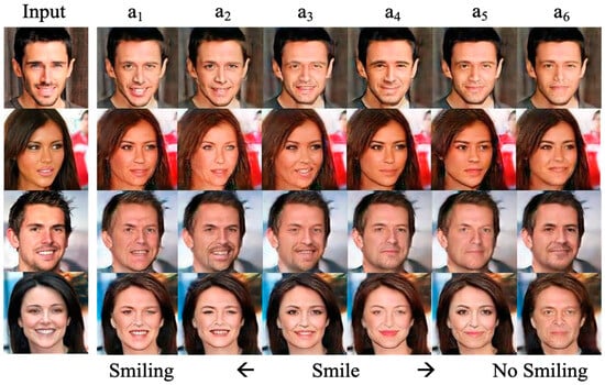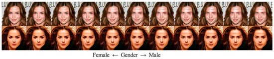 - Shen, Y.; Gu, J.; Tang, X.; Zhou, B. Interpreting the latent space of gans for semantic face editing. In Proceedings of the IEEE/CVF Conference on Computer Vision and Pattern Recognition, CVPR 2020, Seattle, WA, USA, 13–19 June 2020. [Google Scholar]