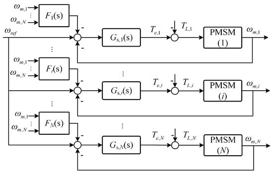 Due to the advantages of high efficiency, high power density, and excellent dynamic response, permanent magnet synchronous motors (PMSMs) are widely applied in industrial production [1,2,3]. For modern complex industrial production processes such as electric vehicles, textiles, and aerospace, the speed synchronization control accuracy of multi-motor control systems is a crucial performance indicator determining production quality.