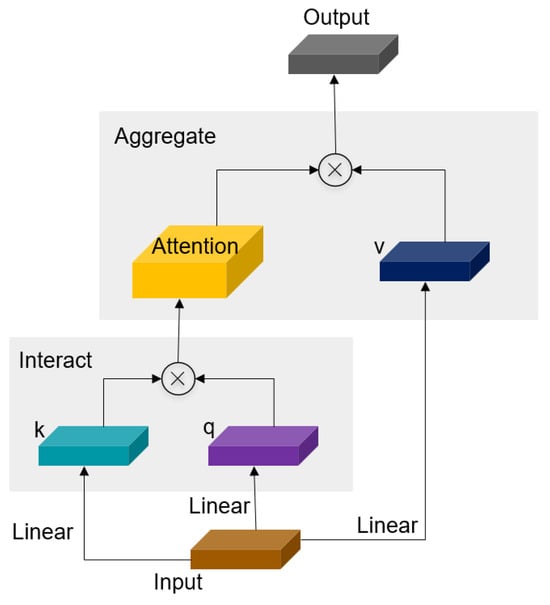 In comparison, FocalNets incorporate a focal modulation mechanism [15], designed to replace traditional self-attention modules (see Figure 3 for the Self-Attention structure). This mechanism, by employing gated aggregation and element-wise affine transformations, effectively captures long-distance dependencies within images and infuses multi-scale visual contextual information into each query token, thereby enhancing the model’s perceptual capabilities and its ability to process complex scenes. By stacking deep convolutional layers and implementing focal modulation mechanisms, FocalNets achieve a more efficient integration of contextual information, enabling the network to improve both performance and efficiency when handling complex visual tasks. Below is a comparative diagram of the self-attention and FocalNets modules.
