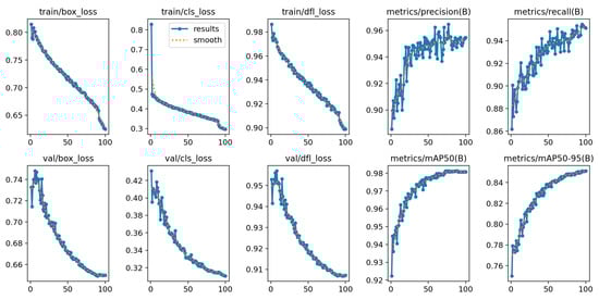 As shown in Figure 9, this chart demonstrates the outstanding performance of our trained model in object detection tasks. The results graph (Figure 9) lists several key metrics, including mAP, recall, and precision. These metrics indicate the model’s strong effectiveness in accurately identifying and classifying targets, showing its ability to maintain high detection performance in various complex scenarios.