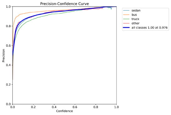 Meanwhile, the P-curve graph (Figure 10) further reinforces this performance evaluation, clearly indicating that as confidence increases, precision also rises. This trend not only reflects the model’s reliability and stability at higher confidence levels but also suggests its effectiveness in distinguishing between true positives and false positives. This capability is crucial for ensuring the accuracy of object detection, particularly in real-time applications that require swift decision-making. Therefore, these results not only highlight the robustness and effectiveness of our model but also demonstrate its applicability in various real-world scenarios, such as autonomous driving, video surveillance, and smart security systems.