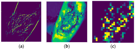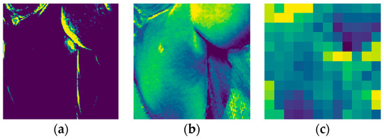 Feature extraction process for necrotizing fasciitis of false positive results generated by the CNNOPTDI model: (a) low-level filters; (b) mid-level filters; and (c) high-level filters.