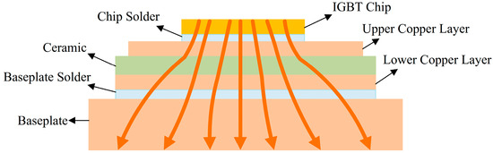 As shown in Figure 1, the junction-to-case structure of the IGBT module is composed of multiple layers. When heat is generated in the IGBT chip, there is a transfer of heat process among different layers due to the presence of temperature differences.