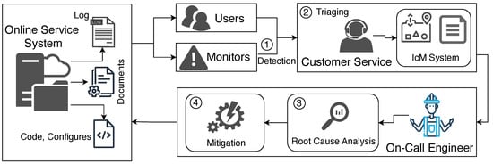 - Chen, J.; He, X.; Lin, Q.; Xu, Y.; Zhang, H.; Hao, D.; Gao, F.; Xu, Z.; Dang, Y.; Zhang, D. An empirical investigation of incident triage for online service systems. In Proceedings of the 2019 IEEE/ACM 41st International Conference on Software Engineering: Software Engineering in Practice (ICSE-SEIP), Montréal, QC, Canada, 25–31 May 2019; pp. 111–120. [Google Scholar]