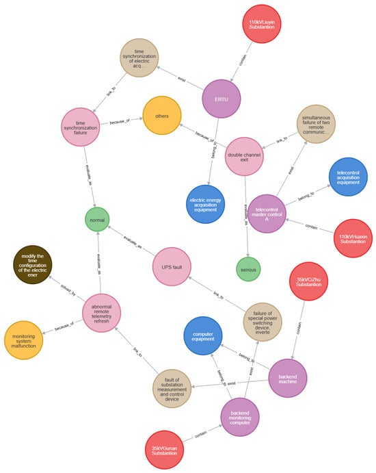 The data stored in Neo4j could be visualized, with Figure 5 providing a partial visualization of the equipment defect knowledge graph.