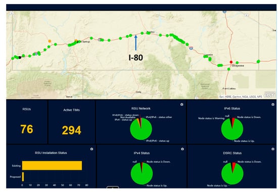 WYDOT CV Pilot RSU infrastructure layout and active TIMs summary [39].