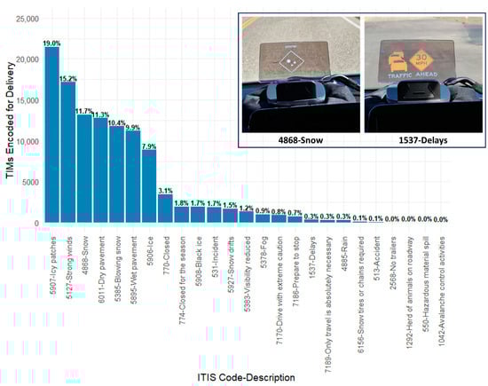 Percentage of TIMs encoded by ITIS code with examples of in-vehicle display.