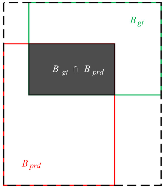 Intersection over Union (IoU), a crucial element in existing mainstream bounding box regression loss functions, is defined as follows. Figure 5 illustrates its calculation, while the corresponding formula is given in Equation (6):
